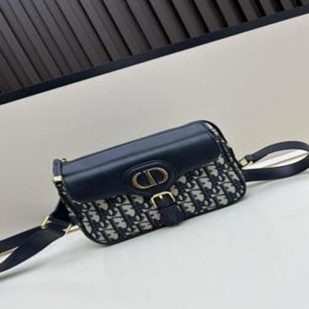 • 블루 오블리크 패브릭과 가죽 플랩, 빈티지 골드 디테일로 세련된 디자인